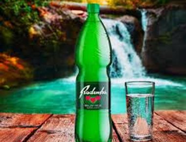 A lightly sparkling natural mineral water with a balanced mineral content and fewer bubbles than the fully carbonated variant.
